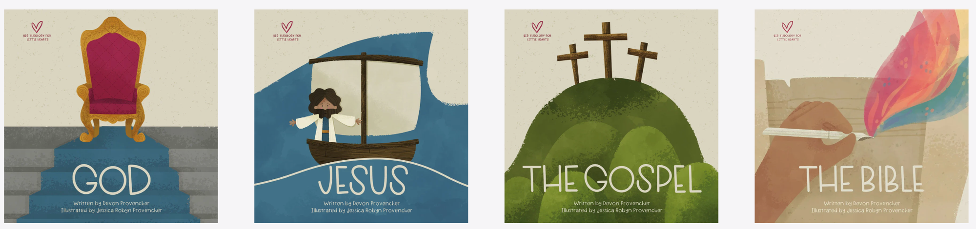 This series written by Devon & Jessica Provencher include books titled: God, Jesus, The Gospel, The Bible, Heaven, Prayer, The Holy Spirit, The Church and Creation